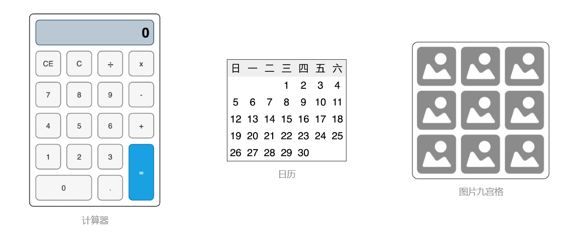 网格布局(Grid)是一种强大的布局方案,它将页面划分为行和列组成的网格,然后将页面内容在二维网格中进行自由的定位,以下效果都可通过网格布局实现