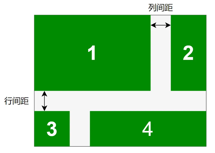 使用rowsGap()和columnsGap()属性,可以控制行列间距,具体用法如下