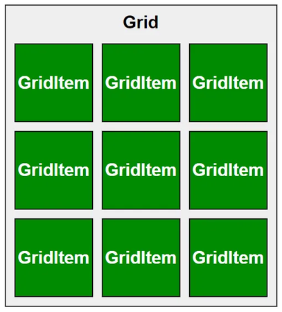 Grid() { GridItem() { Text('GridItem') } GridItem() { Text('GridItem') } GridItem() { Text('GridItem') } GridItem() { Text('GridItem') } ......}