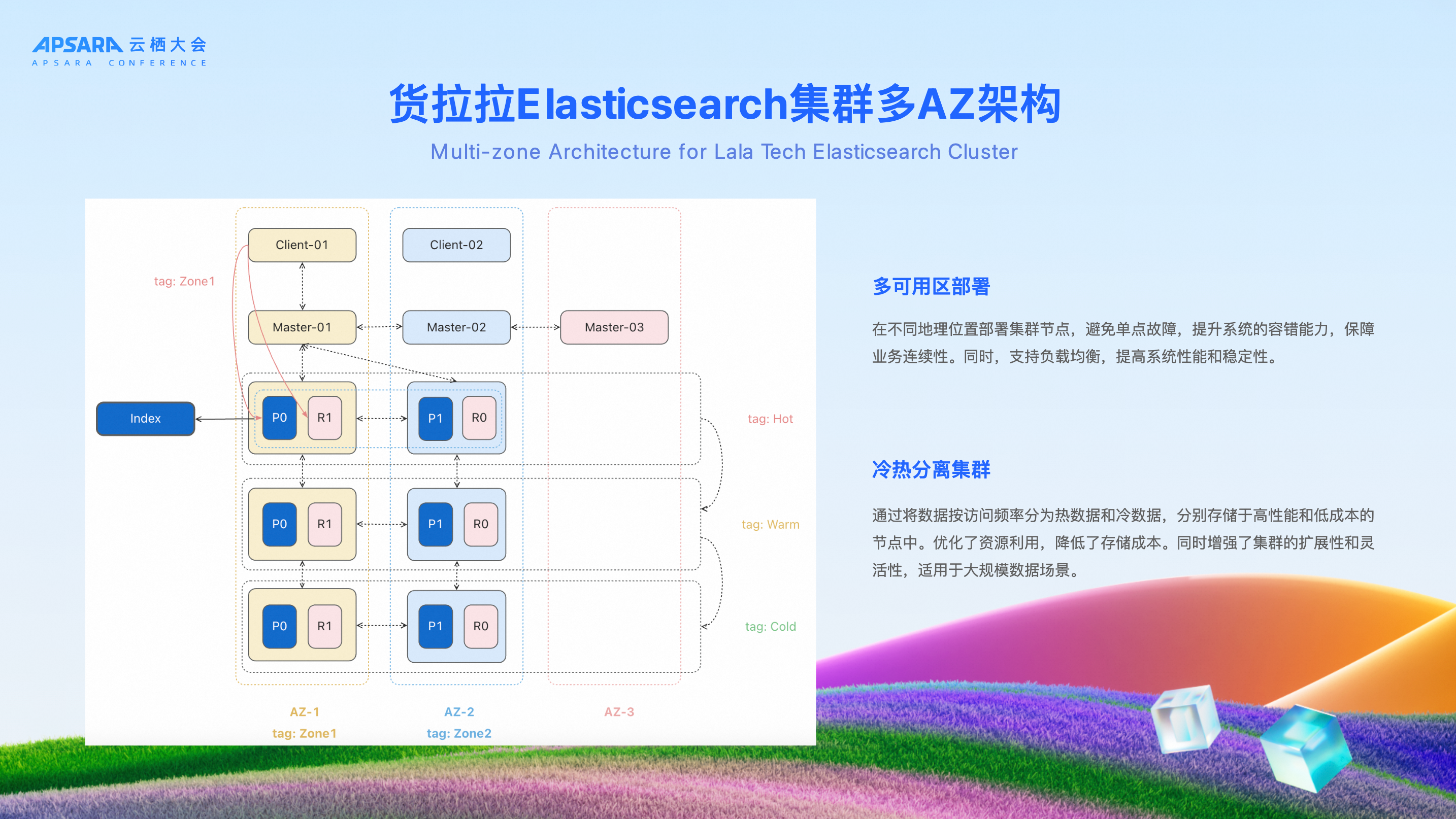 而为了保障全球业务的连续性与高性能数据检索,货拉拉在 Elasticsearch 构建中采用了 多 AZ 架构。这一架构不仅提高了资源利用率和系统稳定性,也为海量数据场景下的扩展与灵活部署提供了坚实基础。