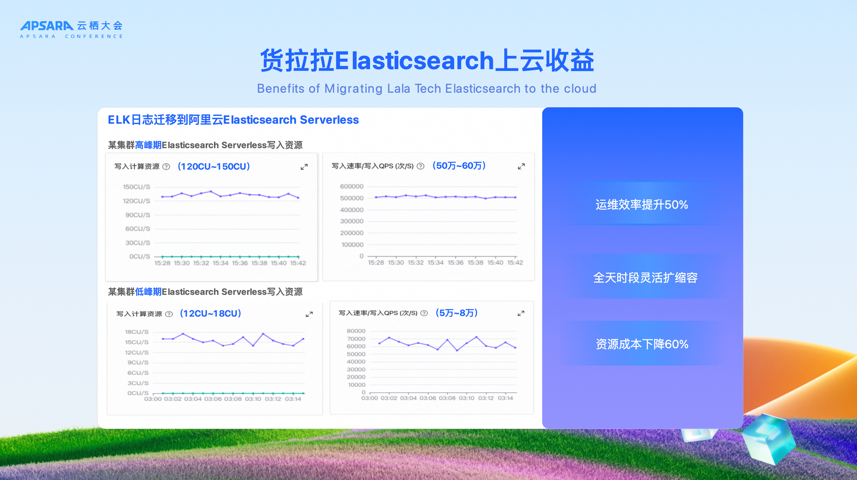 通过将日志集群平稳迁移至 阿里云 Elasticsearch Serverless,货拉拉在资源利用与运维效率上都获得了质的飞跃,不仅优化了技术成本结构,还显著提升了对业务流量波动的应对能力,为核心业务的稳定与高效运行提供了更坚实的后盾。