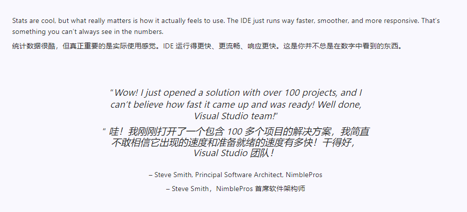 Visual Studio 2026 运行得更快、更流畅、响应更快: