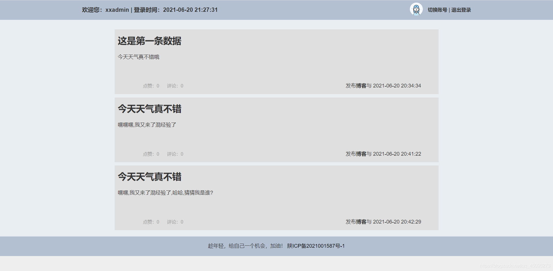 前言:在上篇博客从零到一搭建一个属于自己的博客系统(弌)中我们讲到了登录界面以及功能的实现,接下来我们来看看首页制作以及文章的发布。
