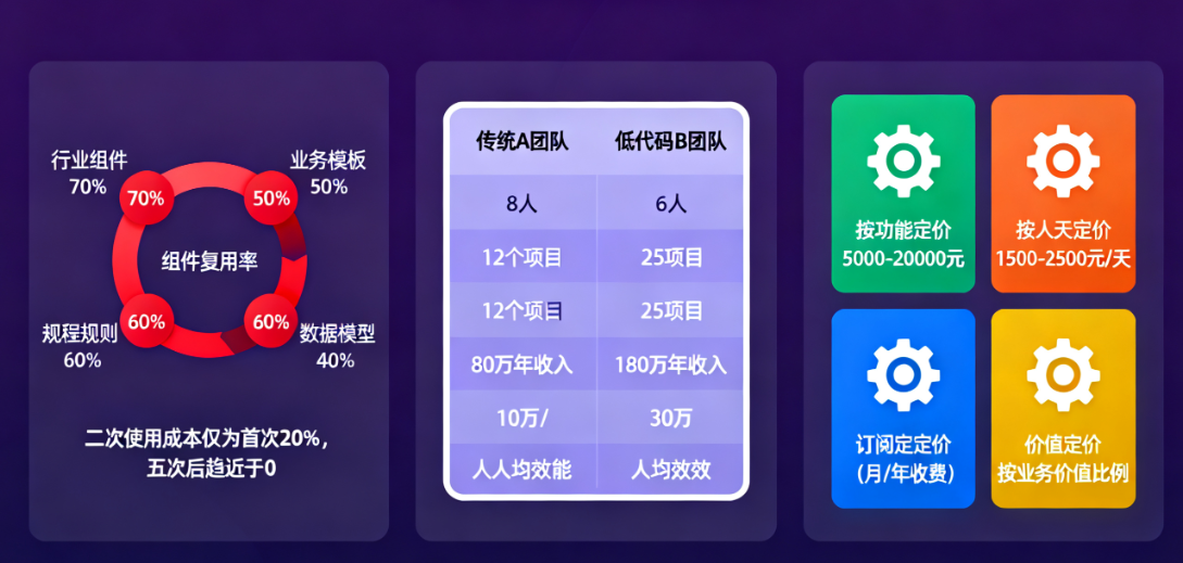 传统模式下报价 10 万的定制功能,低代码模式下可能只需 3-5 万。这个价格区间正好触及了客户的"决策舒适区"。
