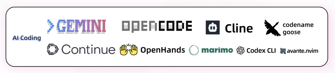 Gemini CLI 和 Codex CLI 同样效仿了 Claude Code 这种在终端实现高度自治的代码理解与修改的形态,把大模型直接带到开发者最熟悉的命令行里,前者深度绑定 Gemini,后者兼容 OpenAI 并开放 MCP 接口。