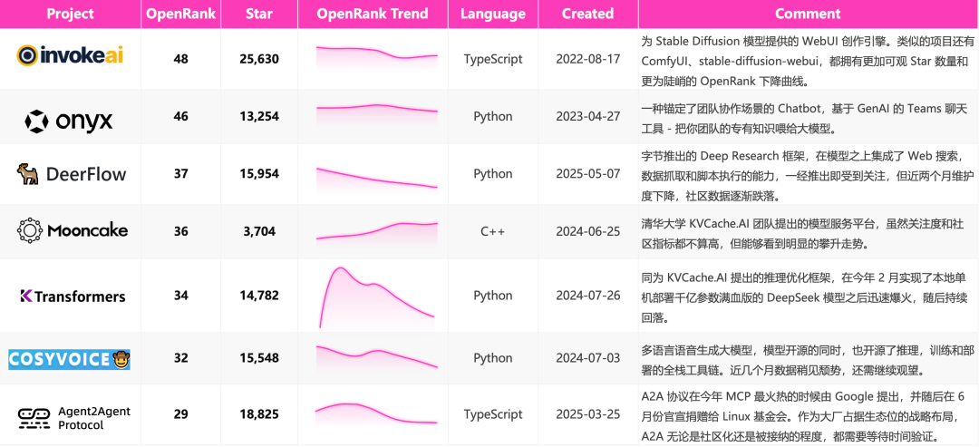除了上述提到的「明星项目」,我们同样梳理了部分没有出现在全景图上,但是依旧被认为是很有潜力的开源项目们,我们会持续保持关注。