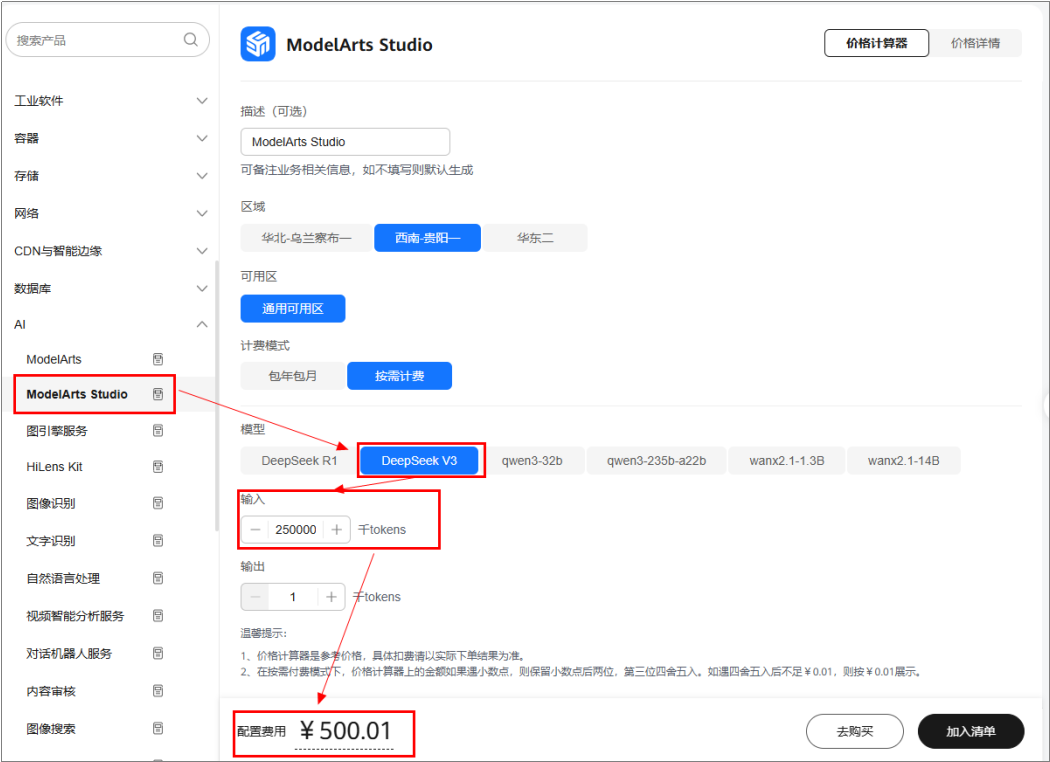 地址:https://www.huaweicloud.com/pricing/calculator.html#/maas