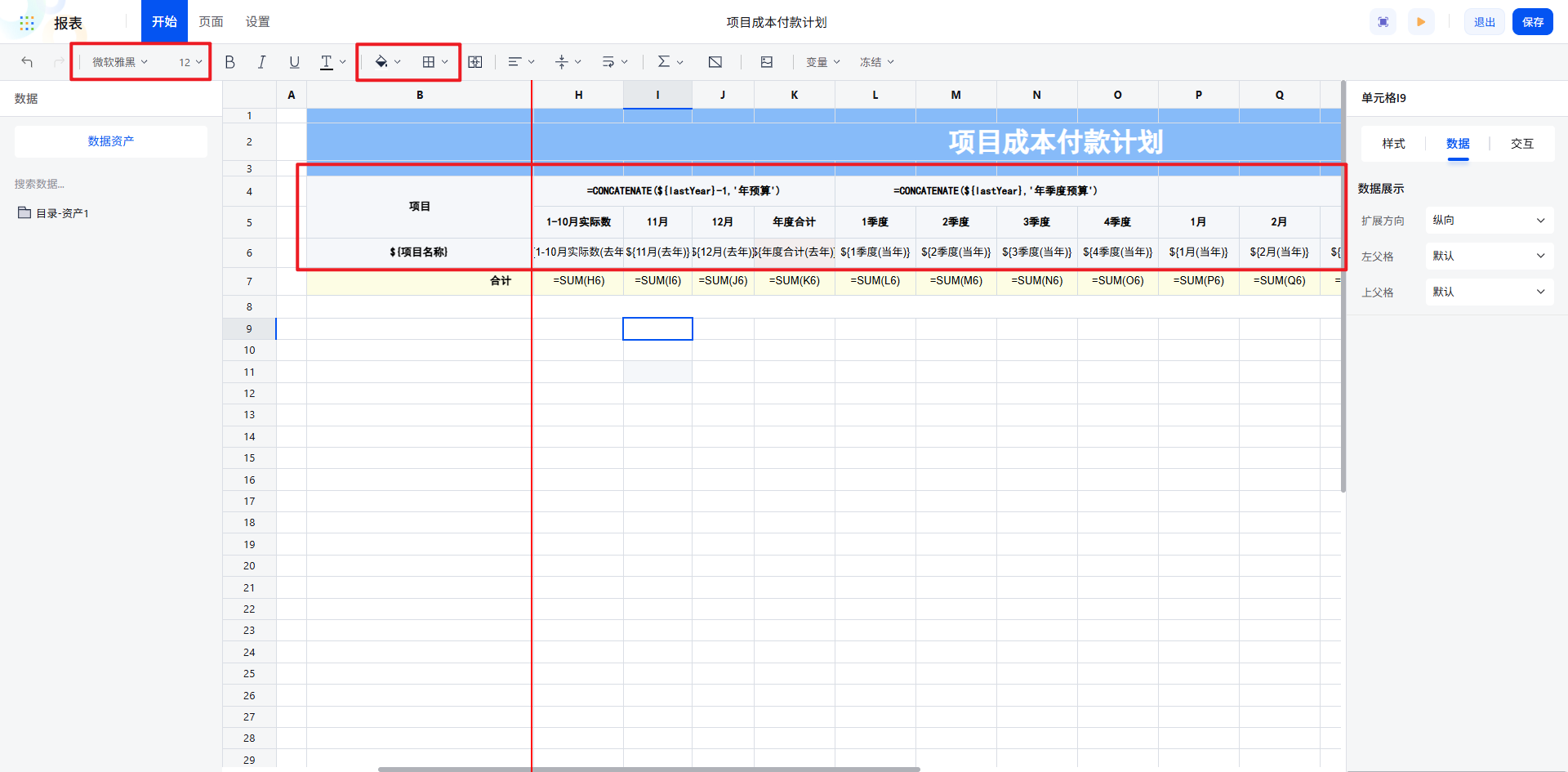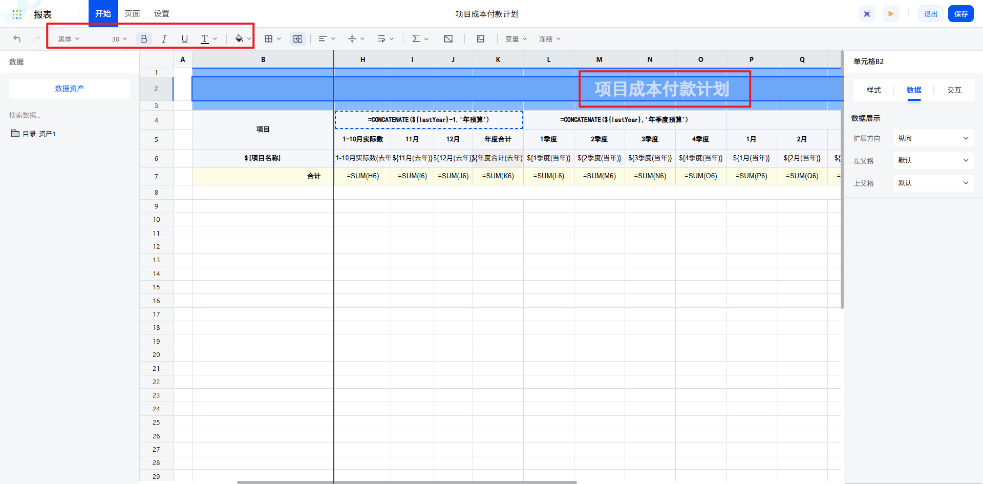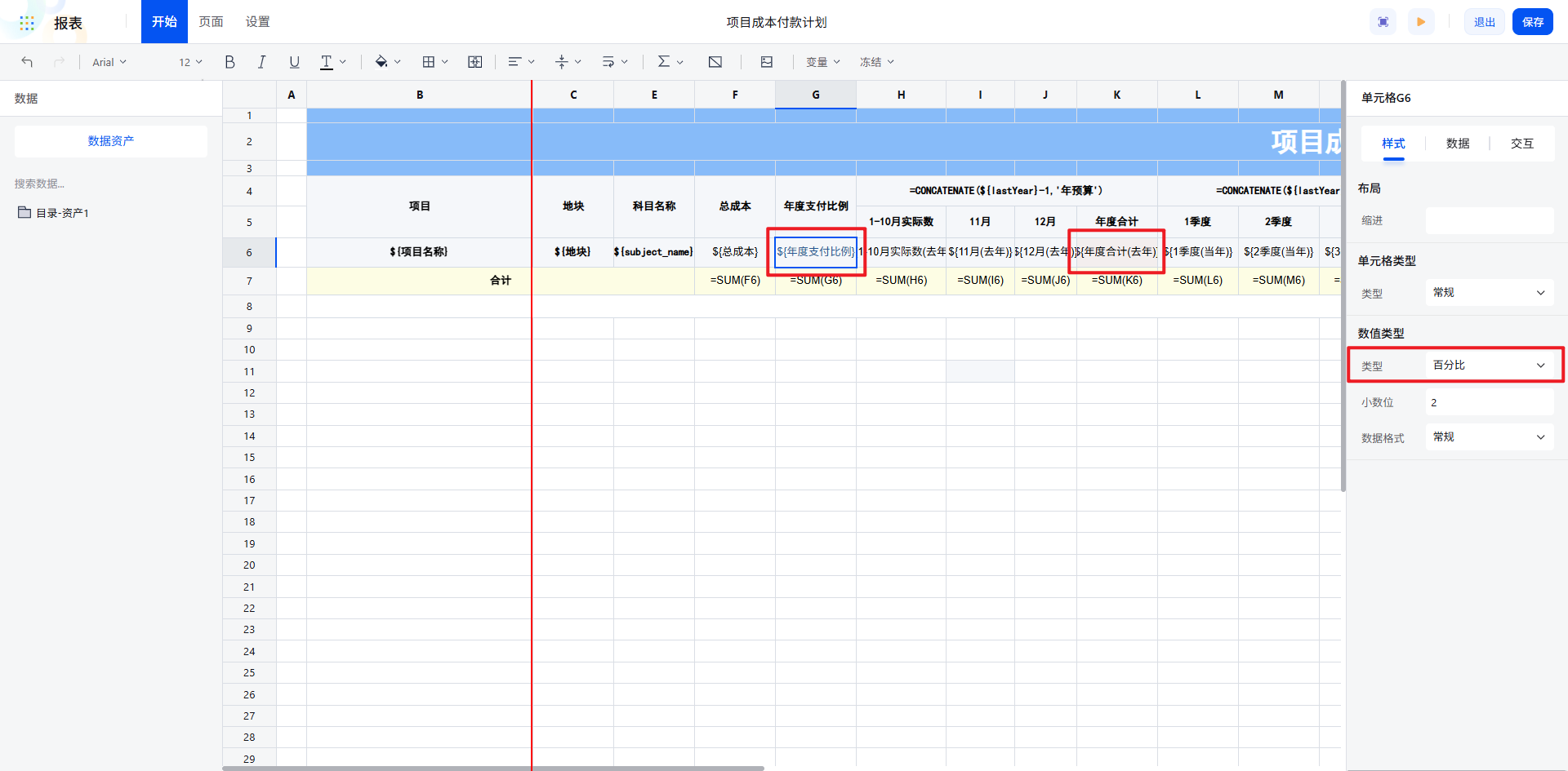 选择“项目成本付款计划年度表”,即可一键跳转到我们已制作完成的报表页面。