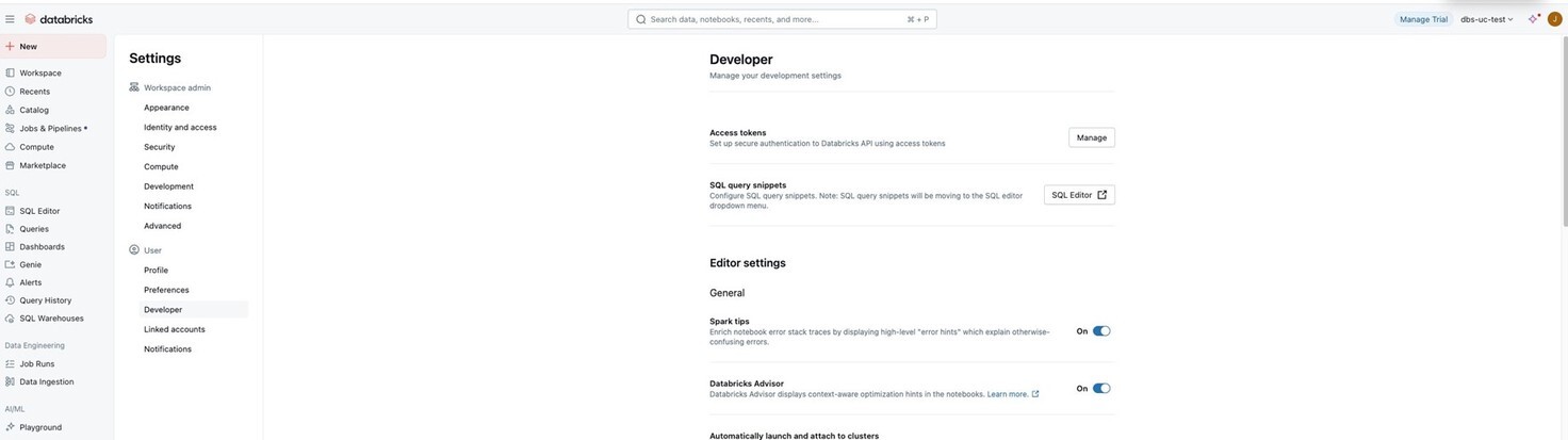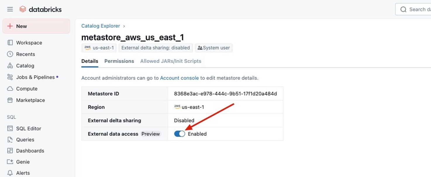 1、首先我们需要开启 Databricks 的 Catalog External Access, 配置步骤如下.