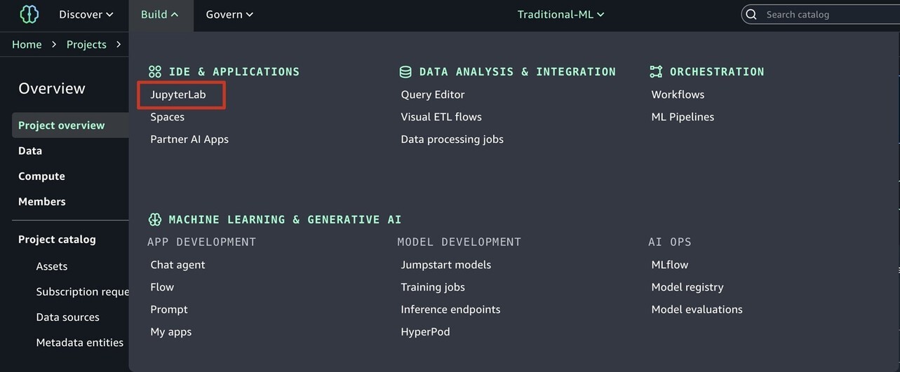 下面我们开始配置 Sagemaker Unified Studio → JupyterLab, 如下图所示