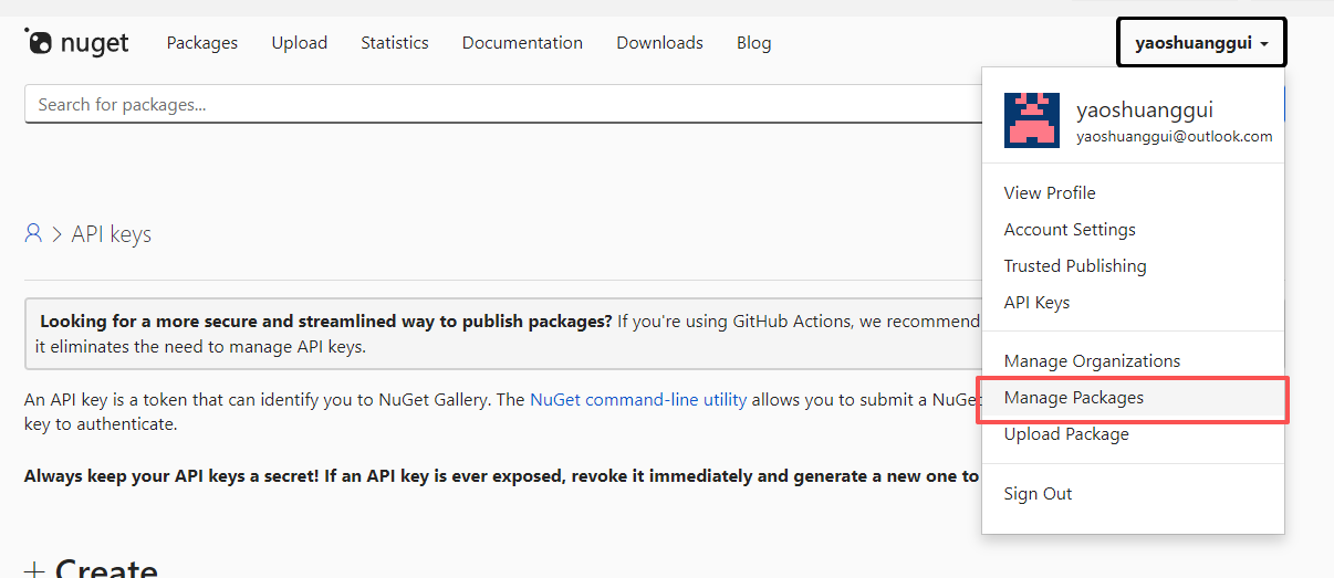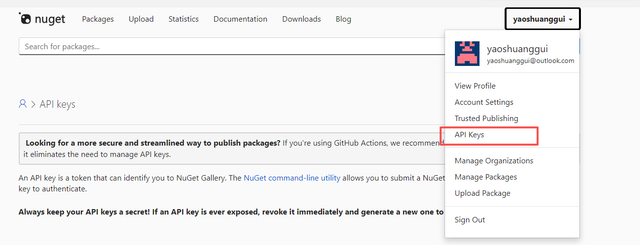 接下来我们使用 .NET CLI 来发布生成好的 NuGet 包到 NuGet 官网(https://www.nuget.org