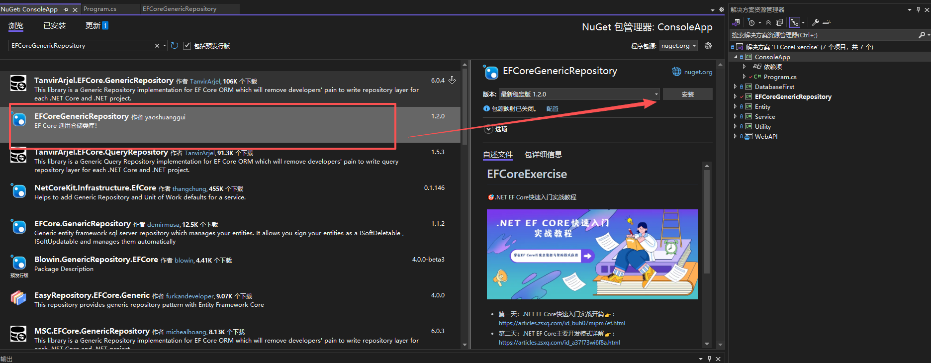 在前面的 .NET EF Core 快速入门实战教程章节中我们创建了一个名为 EFCoreGenericRepository