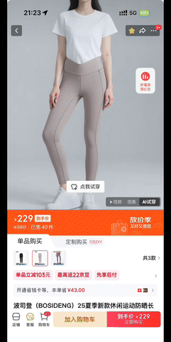 •高效快速生成:消费者发起 AI 试穿请求后,能在 7 秒内生成高清试穿效果图,流畅的交互体验避免等待焦虑,让消费者能够快速尝试多款服装,提升购物效率与乐趣。