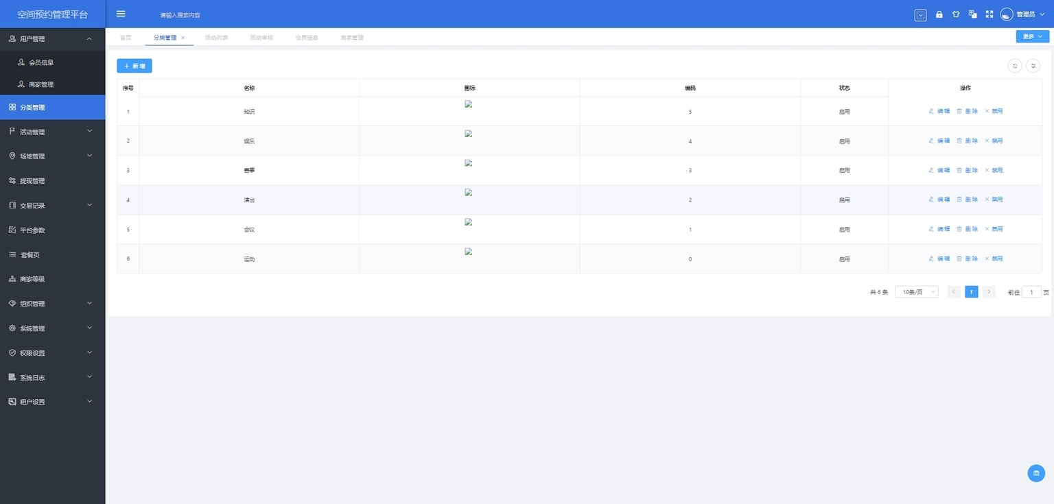 分类管理:对平台上的商品或服务进行分类管理,包括添加、编辑、删除分类,以及分类的层级结构设置,优化场地与服务的分类检索。