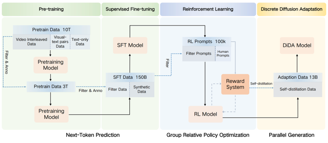 有了交错的长序列,我们就能像训练 GPT 一样,以统一的 NTP 范式进行训练。