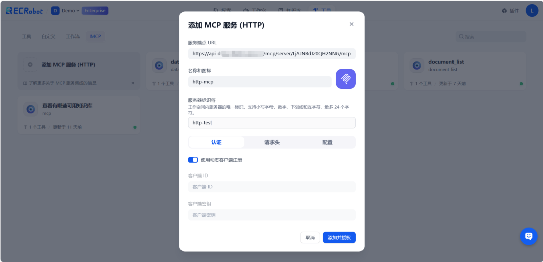 ·工具自动发现:AI 客⼾端能够动态获取 Dify ⼯作流作为可⽤⼯具,⽆需硬编码集成