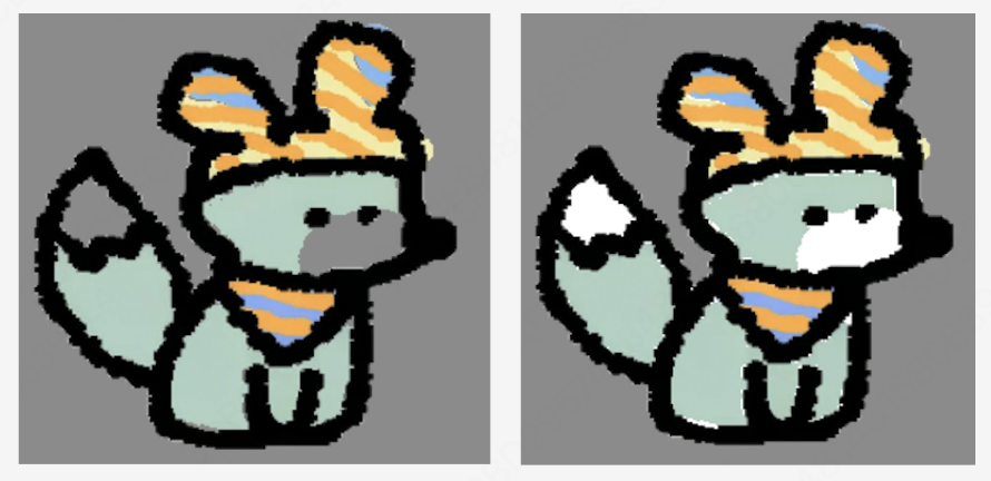 接下来是贴纸功能,我需要把用户的画作做成贴纸等文创产品。第一步就是拿到用户的画,但我发现因为画板是白色的,用户不会去刻意填充白色。就会导致得到的图片是镂空的,非常丑陋,这种图片能导出给用户吗?显然不可以。于是 Comate 使用洪水填充算法,帮我先把图片的白色补齐。这个时候,导出来的是一块矩形大图,和画板尺寸一样大,放到贴纸模版里面非常不美观,而且占空间。