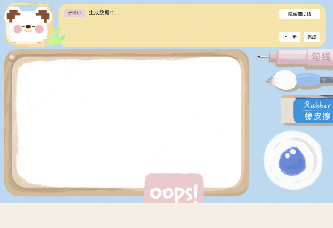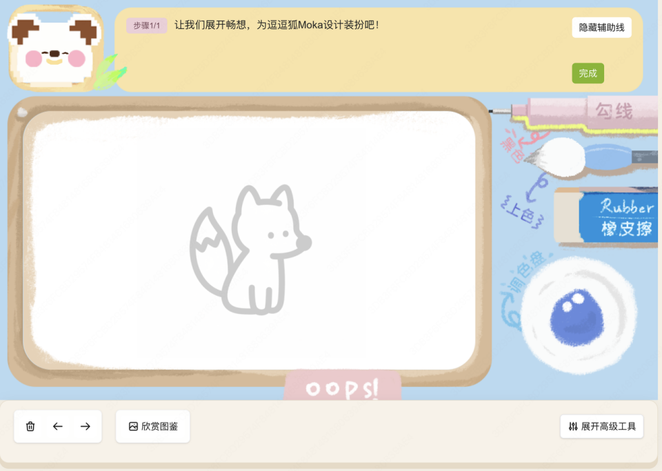 其实创意灵感在 9 月就想到了,比如我个人喜欢画画,也愿意教别人画画,但是一个人的力量其实不算大,时间也很有限,希望有一个平台型工具,可以根据每个人的情况和基础,给出不一样的解决方案,这是 AI 能做得比较好的点。于是我想做一款儿童插画 AI 辅助工具,去解决画画遇到的四个问题“画什么,怎么画,画得怎么样,画完之后...”。让整个流程串起来,画完的作品带着温度和意义,可以作为贴纸、表情包、明信片收藏,画板就是这个工具的核心部分。9 月底开发了一部分,由于一些技术细节实现卡住,比如笔刷抖动粗细的控制,画完之后图像裁剪、填充、描边,实现效果都不尽如人意,于是进程停顿。