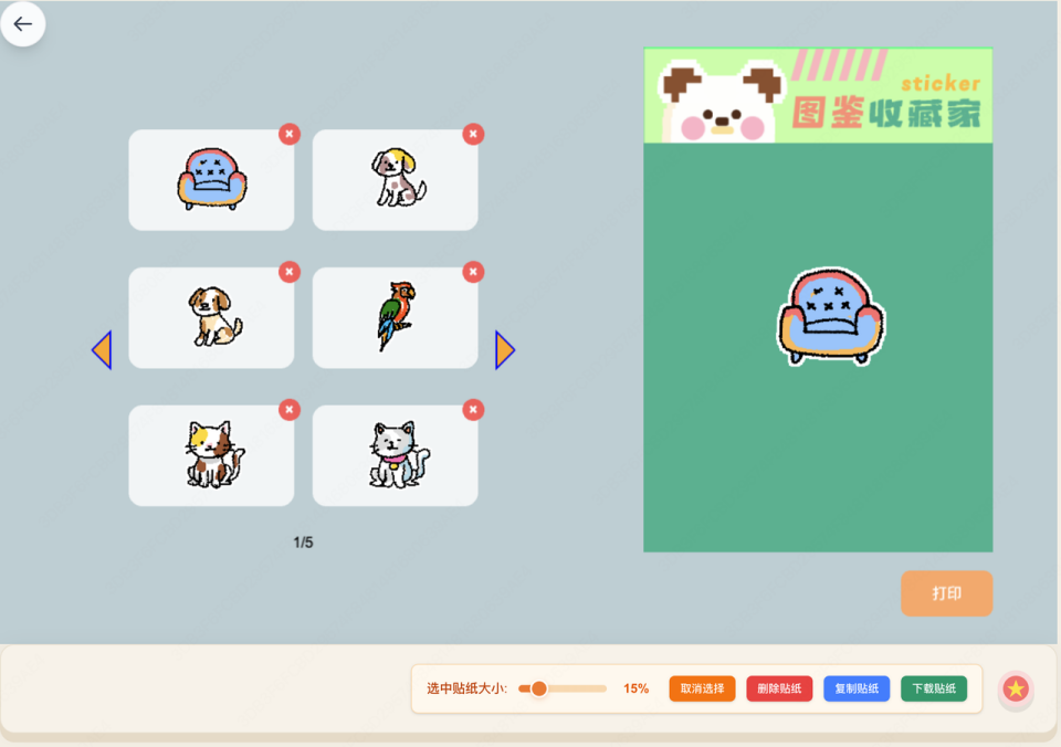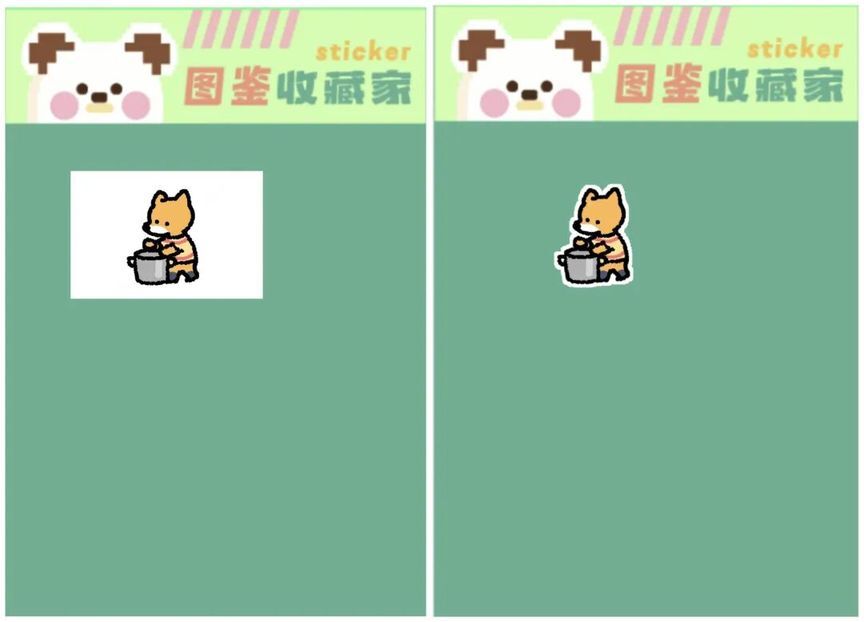 给画完的画做了洪水填充效果,并且加了描边效果,看起来像贴纸一样,贴纸可以直接复制到剪切板,直接发送到聊天框或者文档,也支持一键下载单个贴纸,而非整个贴纸;