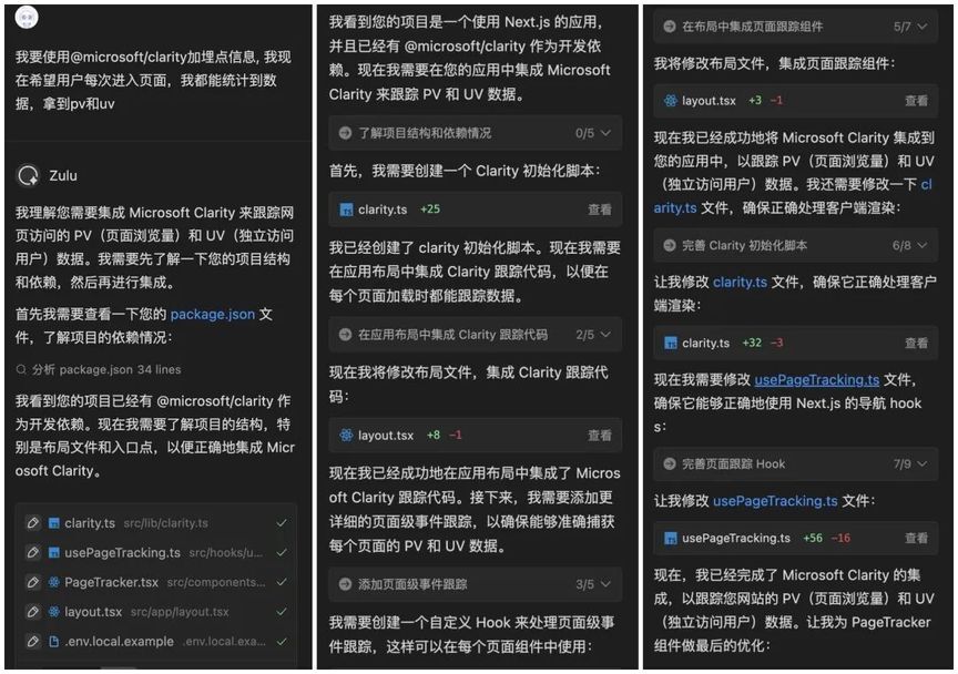 由于需要统计用户使用数据,让 Zulu 帮我接入了埋点功能,5min 不到就帮我接入了 clarity,真的很高效~
