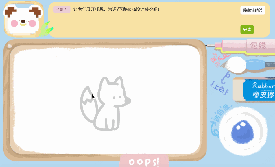 其实画板交互动画,一开始做得也不是很好。用的时候需要手动切换到调色盘,选完颜色再点击上色笔,这个交互很繁琐;有时候可能在勾线,选完颜色,还是用勾线笔涂,就会导致上了黑色,之前还没有撤销功能,简直是灾难现场...需要擦除之后补画,非常麻烦。