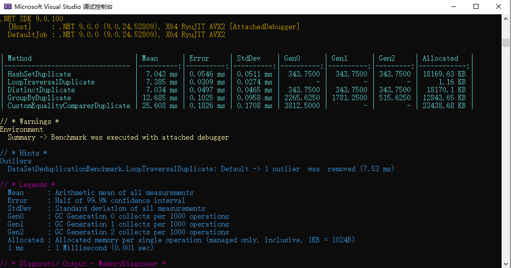 接下来我们使用BenchmarkDotNet对这 5 种集合去重的方式进行性能基准对比测试分析。