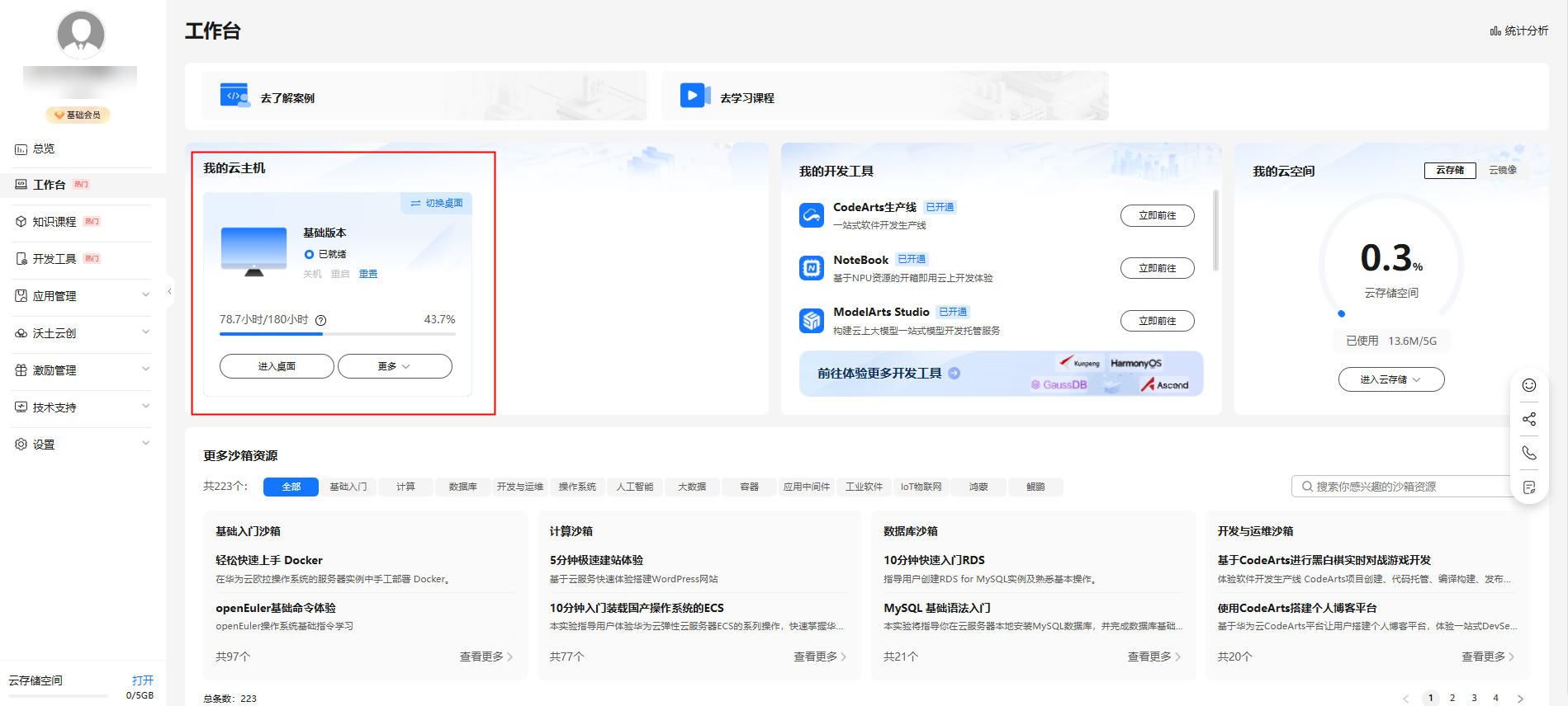 华为云开发者空间,华为云为每个新生态开发者免费提供一台云主机,每位开发者每年可享有数百小时的使用时长。云主机预集成 CodeArts IDE、代码仓及 JDK、Python 等运行时插件,解决本地开发环境中配置复杂、稳定性不足和依赖等问题,为开发者提供性能强大、安全、稳定、高效的开发环境。