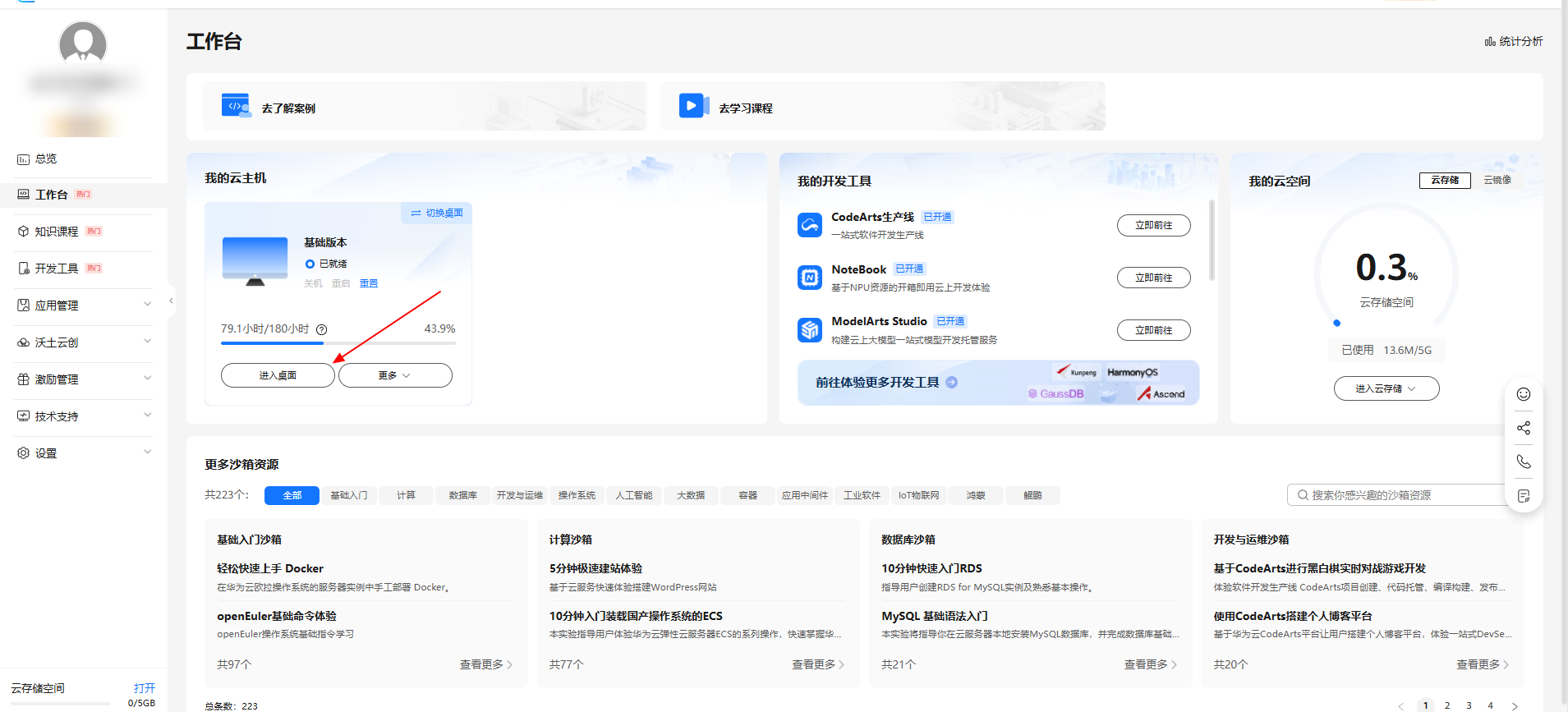 点击‘’进入桌面‘’,进入到云主机桌面中