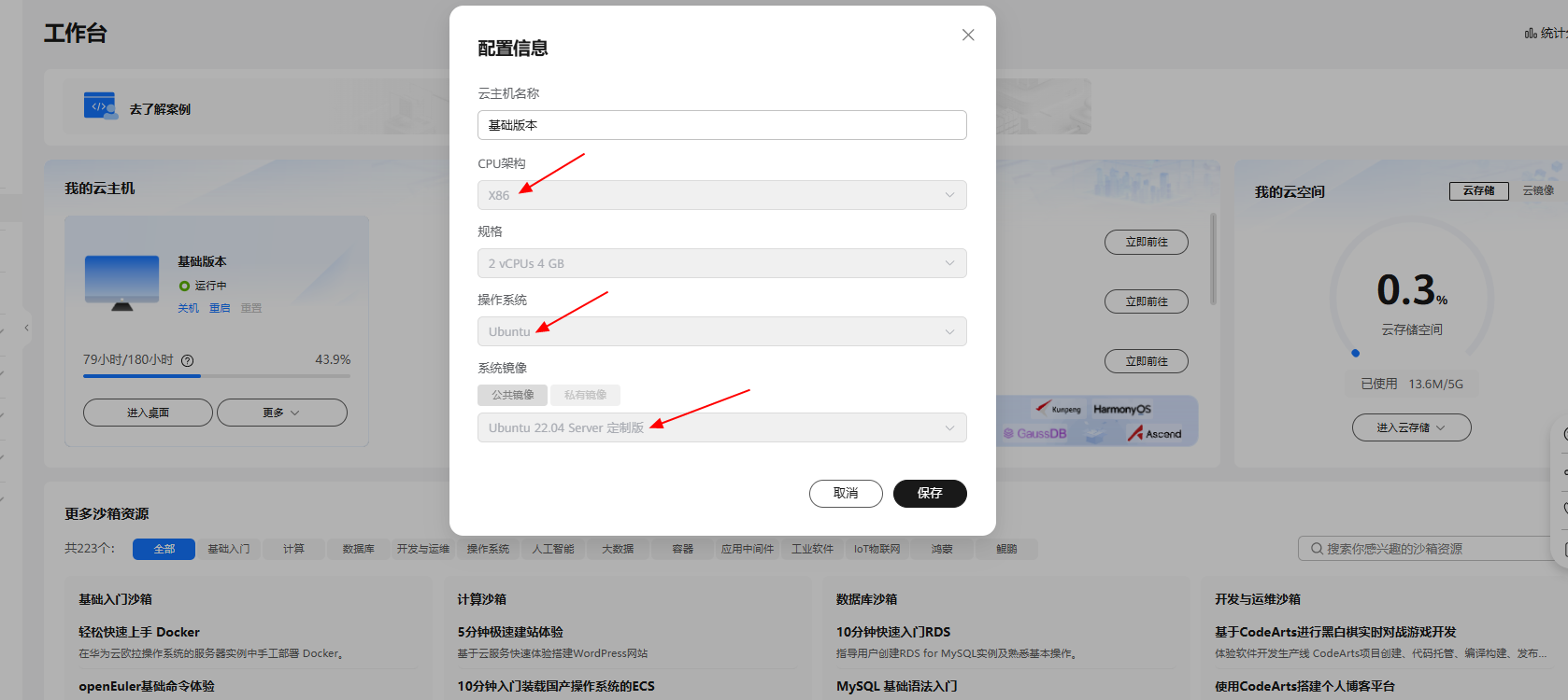 | 开发者空间 | 2vCPUs | 4GB X86 |Ubuntu 22.04 Server 定制版 |