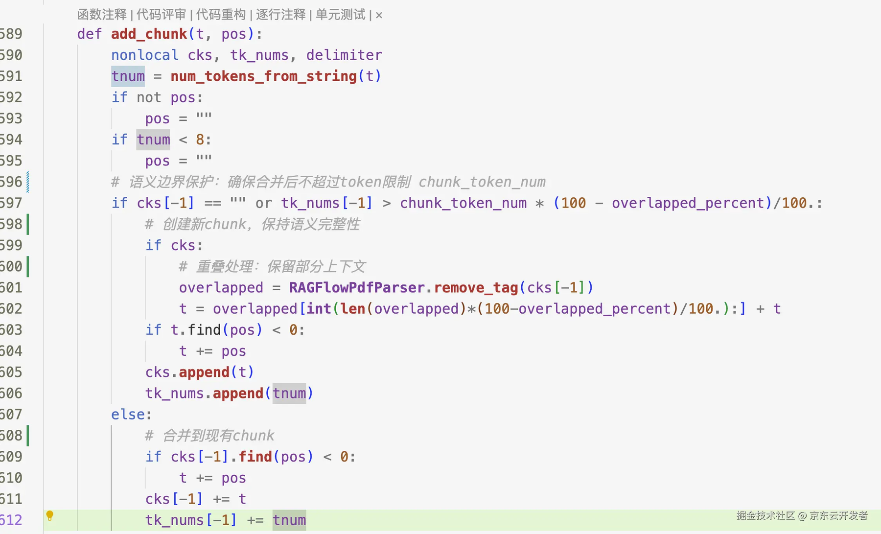 现在的 RAG 框架基本都是基于段落或句子来分块,也都都支持(\n。;!?)的递归分块。那从运营用户角度出发,或者第一次切的时候,如何傻瓜式操作呢?RAGFlow 交出了一份方案,看一下它的分块核心算法