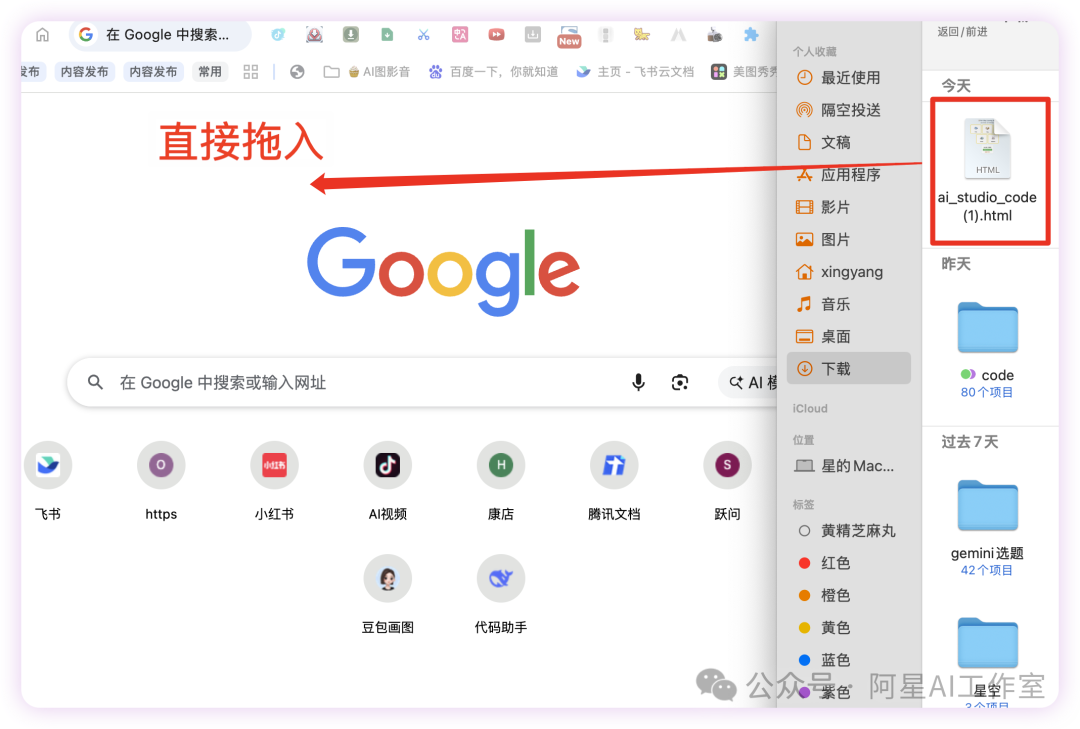 2、打开之后直接拖入浏览器。对!不要管具体哪个位置,鼠标到浏览器直接释放就行了就自动打开了。