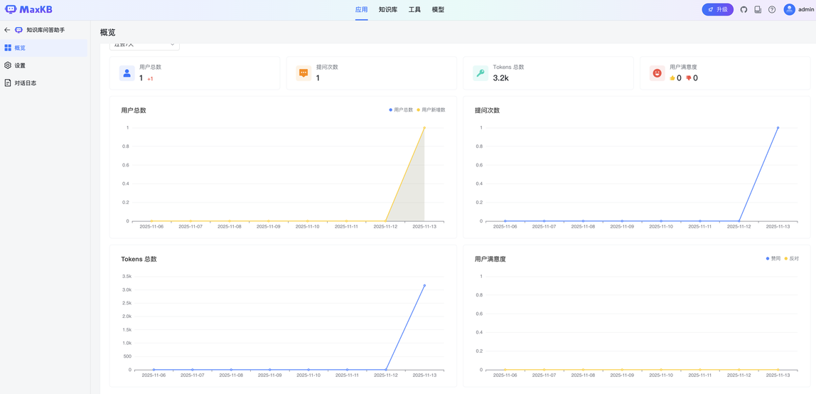 这里我们以一个对话问答助手为例,演示 MaxKB 的使用效果。
