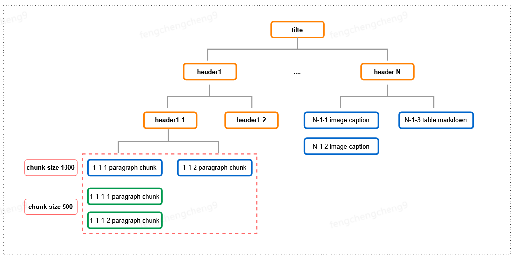 分块策略直接决定上下文的完整性和连贯性,从而影响生成输出的质量。普通分块可能破坏语义完整性,降低相关性。在长篇文档中往往标题,副标题是对一大片文档的整体总结,如果只看分块可能会造成信息丢失。因此,我们优化了分块策略,引入层级分块策略。