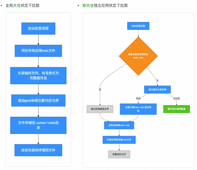 通过识别应用是否是大仓应用,便于后期进行不同类型应用的业务逻辑处理,如知识库同步在大仓下和单仓下的不同分支逻辑是不同的。大仓下子仓的规则会被自动聚合到顶层.cursor/rules 下,实现规则命中率显著提升。
