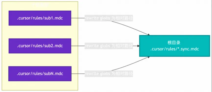 将子仓的规则扁平化同步到根目录 .cursor/rules/*.sync.mdc,避免分散规则导致的遗漏。