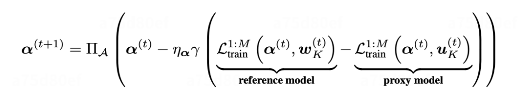 用二者在每个领域数据上的损失差来更新数据混合比例:该损失差代表了增加额外验证数据能够带来的额外收益。损失差大的领域说明增加额外数据带来的收益大,其配比应该增加,反之则应该减少。