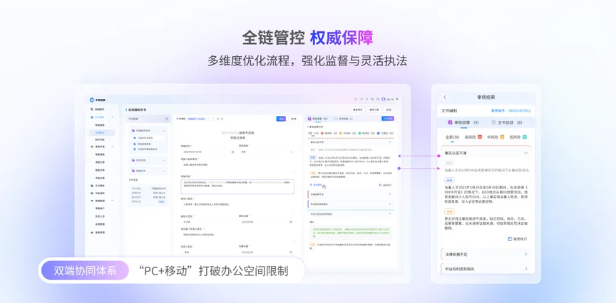 在效率提升方面,支持"PC+移动"双端协同办公模式,执法人员可随时随地进行案卷信息录入、修改和提交,特别适合外出执法和现场办案场景,缩短了案卷制作周期,加快了案件处理进度。