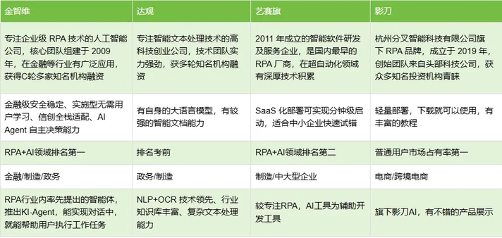 在这方面,金智维、艺赛旗等国产厂商走在前面。它们在政企与金融领域积累多年,对安全与并发的要求更严。而一些轻量级产品(如影刀、八爪鱼)则更适合非敏感业务,比如电商爬取、销售录入等。