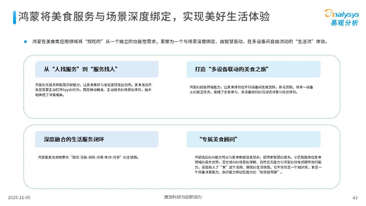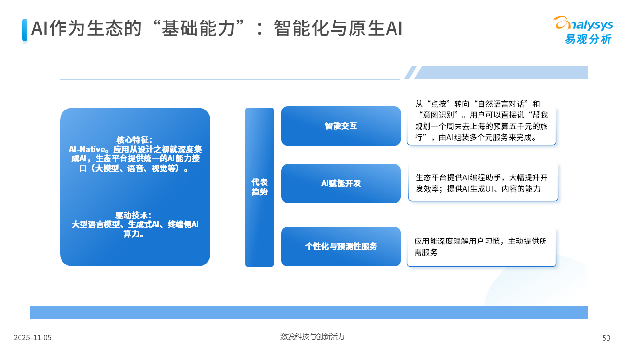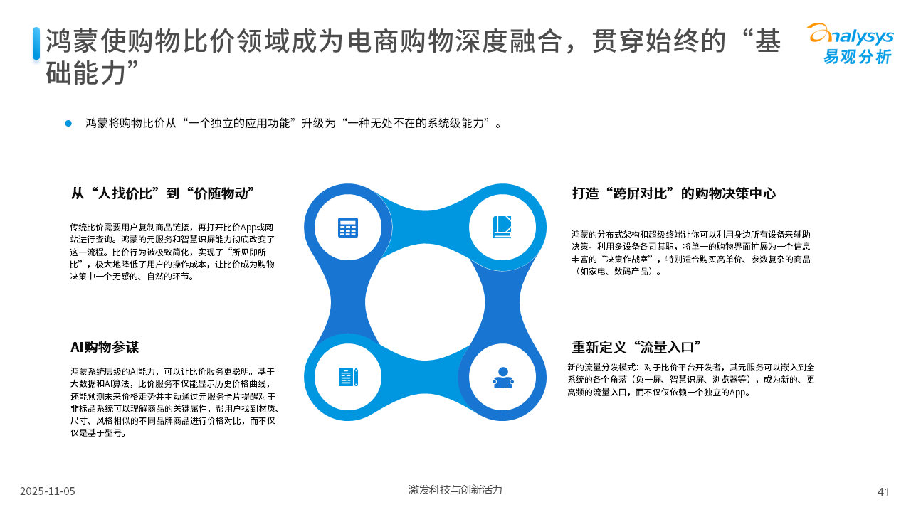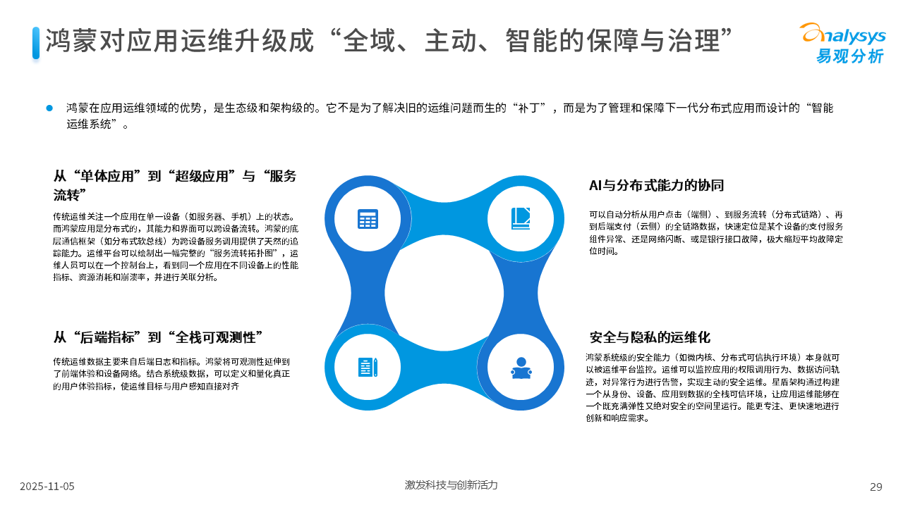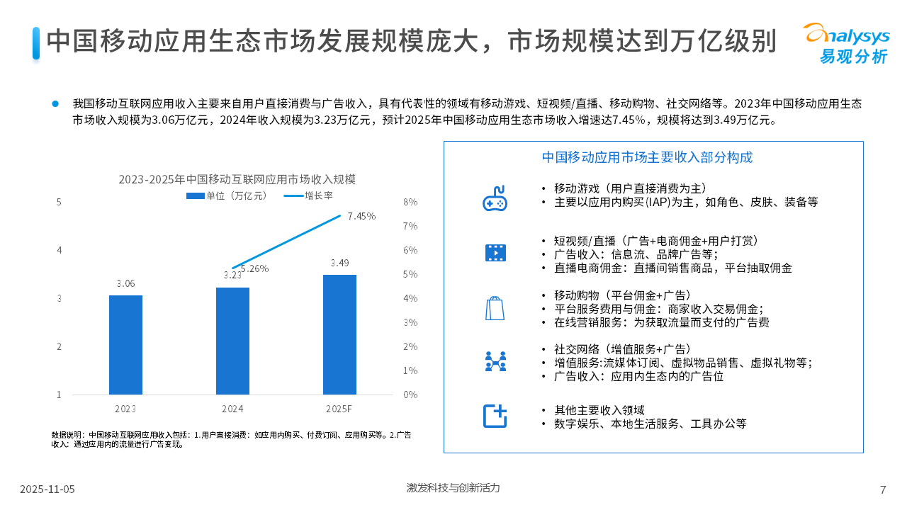 易观分析:中国移动应用市场产业发展规模巨大,应用生态是产业发展的奠基石,当前鸿蒙已经成为应用生态的第三极,适配十大赛道良好有序发展,凭借分布式协同、自主可控技术优势,在多领域效率提升显著,形成差异化竞争力。
