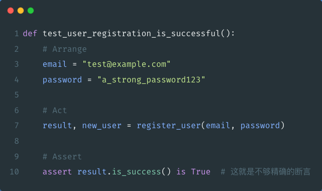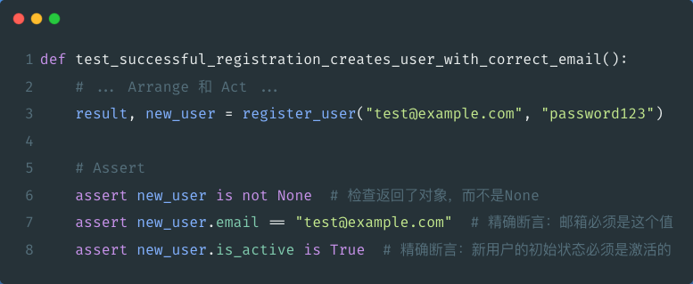 这是一种标准的测试模式,它清晰地分开了「准备数据」、「执行操作」和「验证结果」,AI 非常擅长理解这种结构化的逻辑。