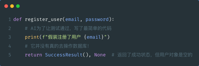 现在,你已经有了一个清晰、全面的测试文件 (test_user_registration.py)。接下来,你与 AI 的互动就变得非常简单和高效: