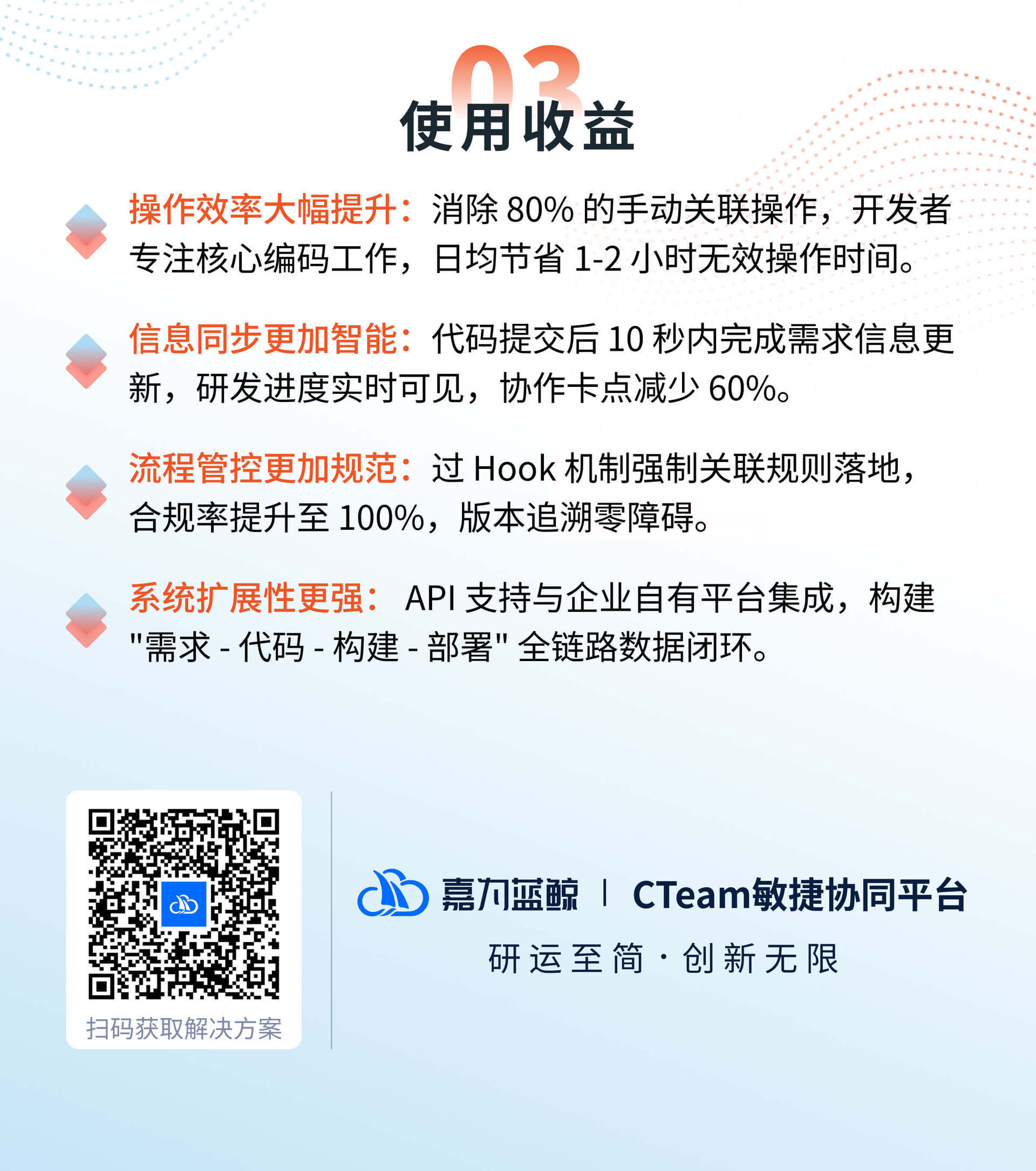 官网原文(免费申请演示):嘉为蓝鲸CTeam敏捷协同平台|代码域x需求域自动化关联追溯:精准破解研发协同断层困局