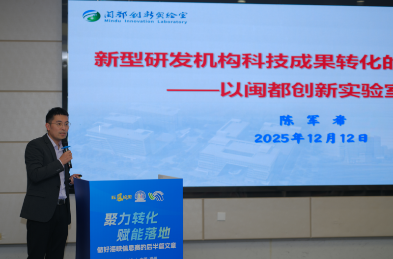 闽都创新实验室成果转化部部长陈军希以“新型研发机构科技成果转化的实践与思考”为题,指出成果转化关键在于建立“科研-市场”对接机制和生态化平台支撑,初创企业应避免闭门造车,主动对接产业链上下游资源。