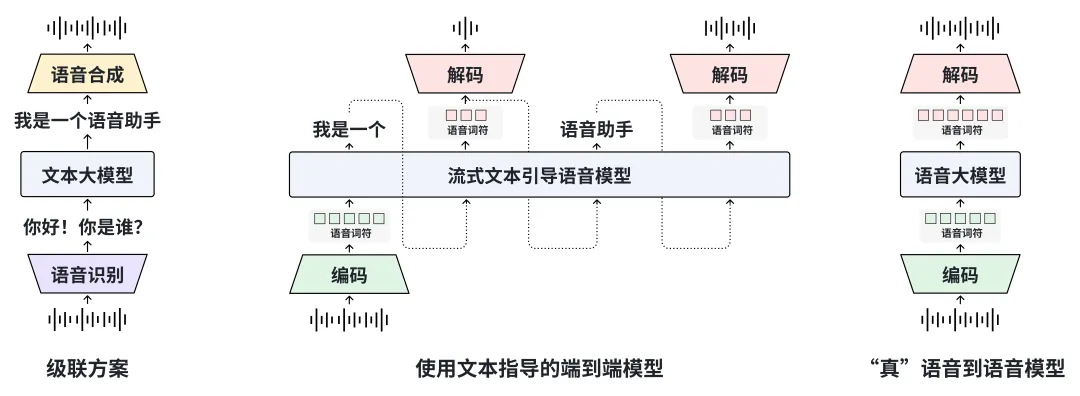 现有的端到端语音助手在生成阶段仍需要先生成文本作为「引导」,再生成语音,导致生成效率降低,生成的声音内容范围也受到文本瓶颈的限制。