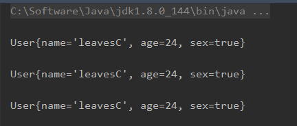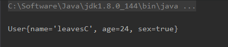 userJson = "{"Name":"leavesC","age":24,"sex":true}";user = gson.fromJson(userJson, User.class);System.out.println();System.out.println(user);}