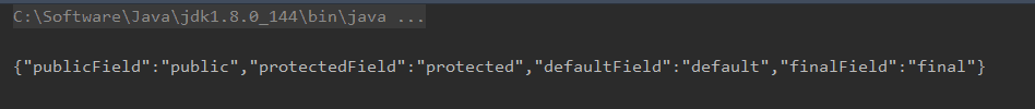 public static void main(String[] args) {Gson gson = new GsonBuilder().excludeFieldsWithModifiers(Modifier.PRIVATE, Modifier.STATIC).create();ModifierSample modifierSample = new ModifierSample();System.out.println(gson.toJson(modifierSample));}
