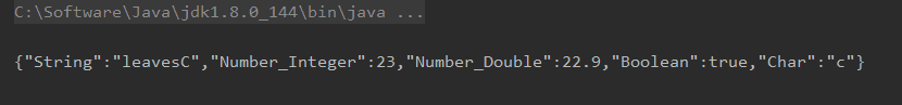 public static void main(String[] args) {JsonObject jsonObject = new JsonObject();jsonObject.addProperty("String", "leavesC");jsonObject.addProperty("Number_Integer", 23);jsonObject.addProperty("Number_Double", 22.9);jsonObject.addProperty("Boolean", true);jsonObject.addProperty("Char", 'c');System.out.println();System.out.println(jsonObject);}