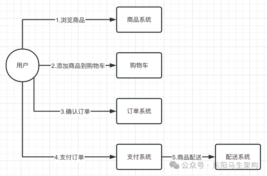 然后,用户就可以从订单系统的查询模块检索自己的订单,此时可以做一些非核心的业务流程。常见的非核心业务有:对商品进行退货、查询订单的物流状态、或者之前没有支付现在对订单进行支付等。