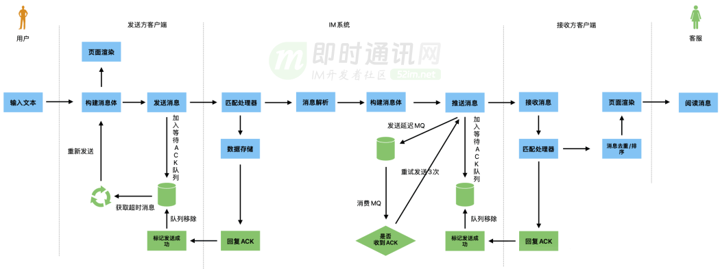 相较于普通 web 系统,IM 系统的消息数据流转链路更长、更复杂。从客户端到服务端,再从服务端到另一个客户端,任何一个环节的故障都可能导致消息延迟、丢失、乱序或重复,从而影响用户体验。