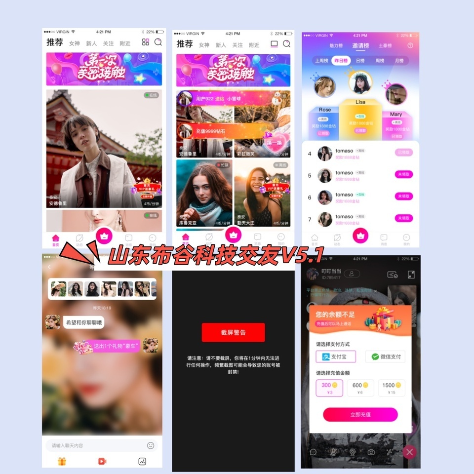 我们(山东布谷鸟网络科技)在我们的成品交友 APP 源码中已经实现了这一功能,接下来,在 1v1 视频交友 APP 中实现禁止录屏功能的几种技术方案来为大家说明:技术实现方案原生 APP 防录屏实现Android 平台:使用 MediaProjection API 检测录屏行为,通过 setSurface 方法监控屏幕内容捕获。iOS 平台:通过 UIScreen.isCaptured 属性实时监测屏幕录制状态。触发保护:当检测到录屏时,自动模糊视频画面或弹出警告提示。
